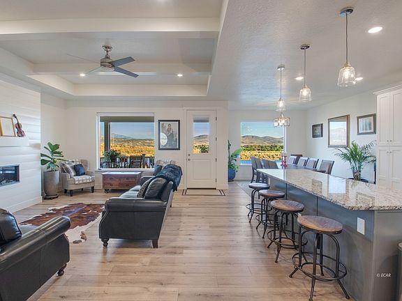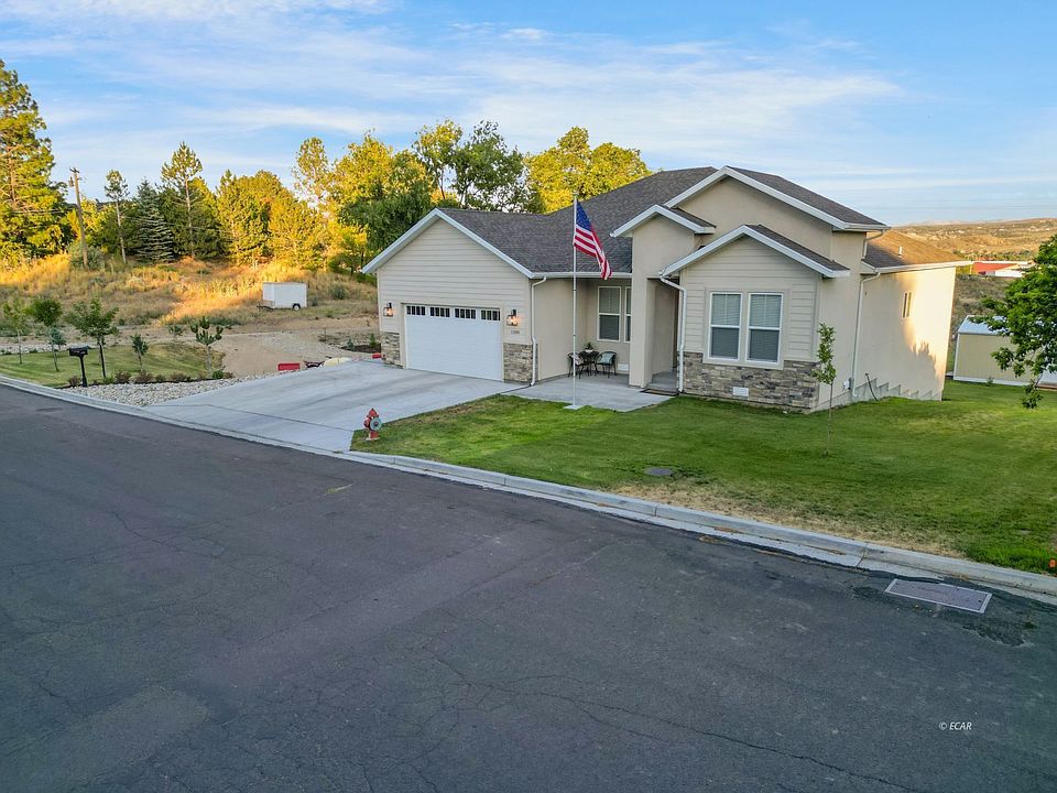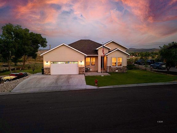 Welcome to this nearly new Bailey home that is the Bellfast model. This home has 5 bedrooms, 3 full bathrooms, a fully finished basement, and a beautiful covered back porch with a view of the Ruby Mountains! The home has street parking and 3 cars can fit on the sidewalk outside of garage! The home sits on almost half an acre which is very hard to find in Elko and is fully landscaped with irrigation. The side of the home was cleared for a future shop and power has been installed to it. Inside there are several upgraded features that you must see to appreciate. Double ovens, an electric fireplace, 9 foot entryway doors, oversized windows in the living room and dining room. This home definitely doesn't lack storage with extra shelving in the laundry room and bathrooms! The downstairs is plumbed for a kitchen if needed for your future use. The shed stays and is fully insulated with power. Everything you need in a home and property is right here.
