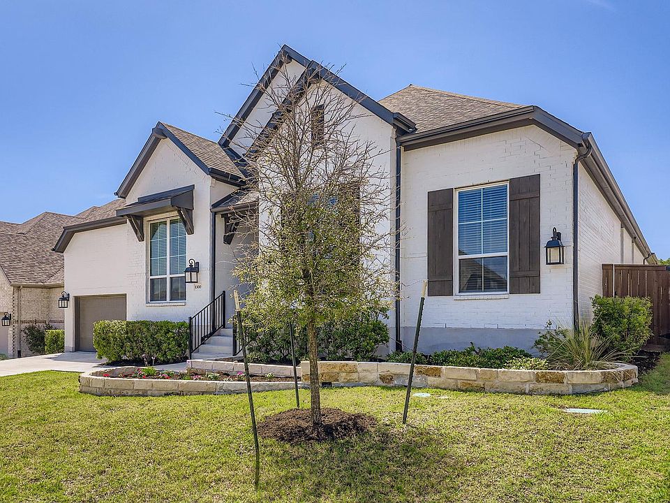 Step into your dream home in the heart of Bryson! This stunning 2023 Highland Homes single-story masterpiece on a 70' Lot of 8,756 SF, which offers 3,689 square feet of exceptional design, comfort, and functionality. With 4 spacious bedrooms, 4.5 bathrooms, and a 3-car garage, this home checks all the boxes for modern living. A grand eight-foot, 5-panel glass and metal double door entry welcomes you into a bright, open layout with soaring 13-foot ceilings that create a sense of volume and elegance. At the heart of the home, the designer kitchen boasts gourmet appliances, a sprawling island perfect for hosting, and connects seamlessly to a formal dining room with buffet and chandelier for effortless entertaining. Designed with versatility in mind, this floorplan features a dedicated home office, game room, media room, and multiple bedroom en-suite ideal for guests, multi-generational living, or long-term visitors. The luxurious primary suite is a private retreat with a spa-like bath including dual vanities, a garden tub, separate walk-in shower, and a custom-designed closet. Outside, enjoy beautifully manicured landscaping with native plants and stonework, and relax on the spacious covered patio with no rear neighbors for added privacy and serenity. Located in Leander ISD and just minutes from 183A, this home offers an easy commute and access to top-rated schools. The Bryson community features resort-style amenities including a pool, playground, pavilion, and catch-and-release fishing pond - making it easy to unwind close to home. Priced excellently and packed with upgrades, this is a rare opportunity to own one of Highland Homes' most popular floorplans - schedule your tour today!