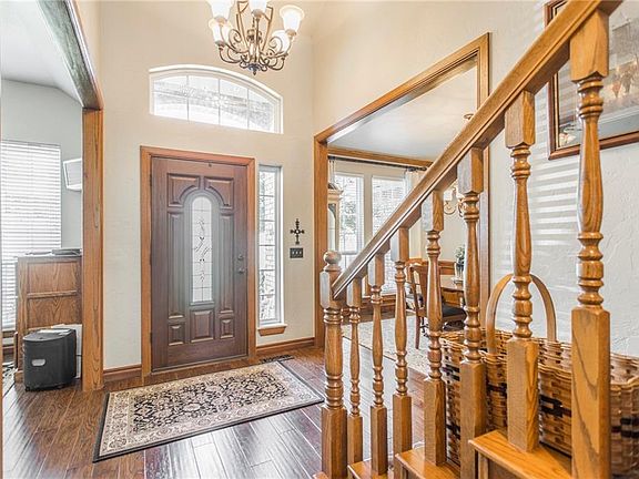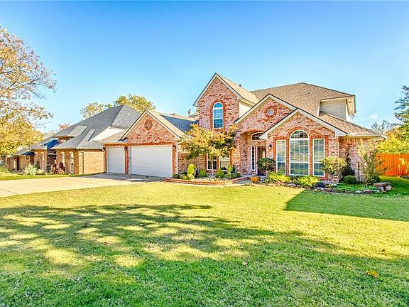 This home will wow you with the beautiful greenbelt view behind. You will have all of your needs met with a large living area, additional sunroom, bonus room upstairs and office. Most of the downstairs has wood flooring, and there are windows all across the back of the home to allow lots of light to flow through. The chef's kitchen has a large island, lots of counter and cabinet space, a pantry, granite and stainless appliances. The master and half bath are downstairs. Upstairs you will find an en suite bedroom with full bath and a jack and jill bath between the other two bedrooms as well as a bonus area. Fox Lake is centrally located in Edmond with great access to I-35 and shopping as well as a neighborhood pool.