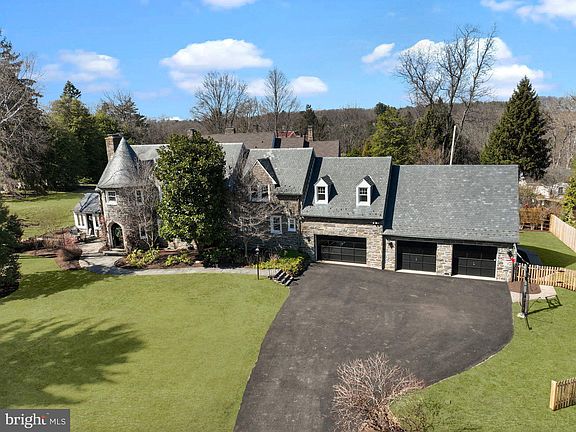 This extraordinary Jenkintown home went under a total home renovation in 2023 seamlessly blending modern upgrades with its timeless original charm truly making it one of a kind. Nestled on a one acre picturesque corner lot with mature trees, this stunning stone residence offers a serene retreat while exuding unmatched curb appeal. From the moment you arrive, the castle-like turret entrance and expansive stone façade make a lasting impression. Step through the arched main doorway into a welcoming foyer with elegant stone flooring, offering ample space for furniture to create a cozy yet grand entrance. Designed for effortless entertaining, the main level boasts clear sightlines from end to end, complemented by brand-new light-toned hardwood flooring, recessed lighting, and a fresh neutral color palette that brightens every space. The inviting living room features an oversized gas fireplace, perfect for cozy winter evenings. Flanking the fireplace, glass-paneled doors lead to an expansive sunroom with a newly vaulted ceiling and automated window treatments. A charming farmhouse-style door from the sunroom opens onto an inviting patio, beautifully lit by bistro lighting—an ideal spot for outdoor gatherings. Adjacent to the living room, the spacious dining area comfortably accommodates seating for eight, with additional space for lounge furniture—perfect for an after-dinner cocktail. The heart of the home, a breathtaking chef’s kitchen, showcases an 11-foot seamless quartz center island, a dedicated coffee or bar area with a built-in beverage fridge, and custom cabinetry. A newly carpeted secondary staircase off the kitchen provides convenient access to two additional bedrooms and a hall bathroom. Completing the main level are a stylish powder room, multiple storage closets, and access to the basement through a pocket door. Upstairs, the primary suite is a true sanctuary, featuring a cozy fireplace, an upgraded en-suite bath with an oversized shower, and an incredible walk-in closet with custom built-ins. Down the hall, two additional bedrooms share a beautifully updated Jack and Jill bathroom, while a private guest suite—with its own full bath—sits at the far end of the home. Accessible via the kitchen staircase, this secluded space is perfect for an au pair, in-laws, or visiting guests. Unparalleled Garage & Bonus Spaces The home’s three-car garage is a standout feature with limitless possibilities. Bay #1 is heated with extra-tall ceilings—perfect for a home gym, classic car storage, or even a golf simulator. Bays 2 and 3 are spacious and connected, offering a full staircase leading to a massive loft spanning the width of the garage. Whether transformed into a game room, home office, or creative studio, this bonus space is brimming with potential. 1300 Gilbert is conveniently located to septa regional rail transportation making it a breeze to get into center city or other points of interest. It is also close to major shopping areas such as The Fairway and downtown Jenkintown where you can enjoy excellent dining options and a variety of small businesses. Don't hesitate to schedule your tour of this immaculate home before it's gone! Additional Upgrades: Newer Hot Water Heater (2022) Routine Roofing Repair and Maintenance (2023) Fence (2024) All New Pella Windows (2023) (Exception of basement and downstairs garage windows) New Driveway (2023) Completed Updated Electrical (2023) Additional Highlights: Slate Roof – Timeless durability and character Oversized Slate-Top Window Sills – A refined architectural touch Completely Fenced Backyard (2024) – Private and pet-friendly Gas Fireplace - makes starting a fire a breeze Automated blinds in sunroom - provides sunlight or full privacy in just a few seconds