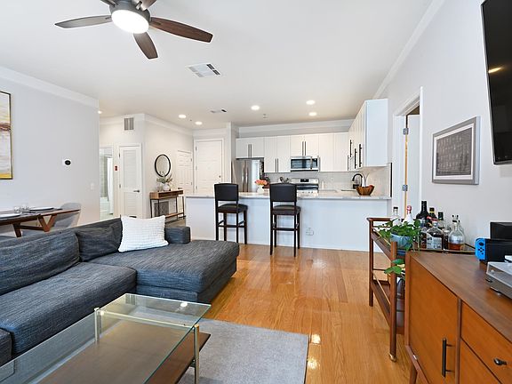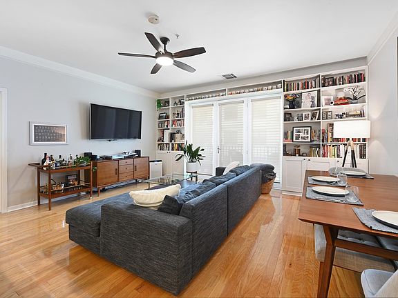 Welcome to the epitome of urban living in the highly sought-after Upper Grand neighborhood! This stunning condo offers an impressive 1100 square feet of open concept space, featuring two generously sized bedrooms and bathrooms and a covered attached parking spot. As you step inside, you'll be greeted by 9.6" ceilings, creating an airy and spacious ambiance. Enjoy the tranquility of your large private balcony, overlooking a picturesque courtyard, perfect for relaxation and outdoor entertainment. The newly renovated kitchen is a chef's dream, adorned with shaker-style wood cabinetry, sleek quartz countertops, and stainless steel appliances. The custom backsplash adds a sophisticated touch, while the enormous breakfast bar offers seating for four or more, alongside space for a dining table. With its butterfly-style layout, this condo has bedrooms on opposite ends for complete and total privacy. Within each bedroom, this condo boasts two spacious walk-in closets, providing ample storage for your belongings. Outfitted with custom Elfa Closet Systems, these closets provide more than a place to store your clothes. The primary bedroom features a large 8'x6' walk-in closet and an ensuite bathroom with a double vanity, a large stall shower, and a linen closet for convenience. Additional desirable features include a custom wall unit in the living area, a washer and dryer, a brand new HVAC unit, and a brand new hot water heater. Custom electronic Hunter Douglass Silhouette blinds complete the living with their enhanced energy efficiency, while sleek ceiling fans in each room provide both style and comfort. Convenience extends to the garage parking spot (#107) that comes with the condo. The building, known as 1300 Grand Street, is constructed with concrete and steel, offering durability and peace of mind. Residents can also enjoy the benefits of a well-equipped gym with a Peloton, a landscaped courtyard, and remarkably low monthly dues. The neighborhood is a haven for amenities, with an abundance of restaurants, retail shops, Trader Joe's, dog parks, daycares, schools, children's play areas, the Gravity Vault, basketball, tennis courts, and Hoboken's newest and largest park, right across from the building's entrance. Commuting is a breeze with easy access to buses, the uptown ferry, and the free Green HOP that conveniently stops at 13th & Adams Street, providing a direct route to and from the PATH. This home truly has it all - modern luxury, convenience, and a vibrant neighborhood filled with endless opportunities for entertainment and leisure. Don't miss the chance to make this your new urban retreat.