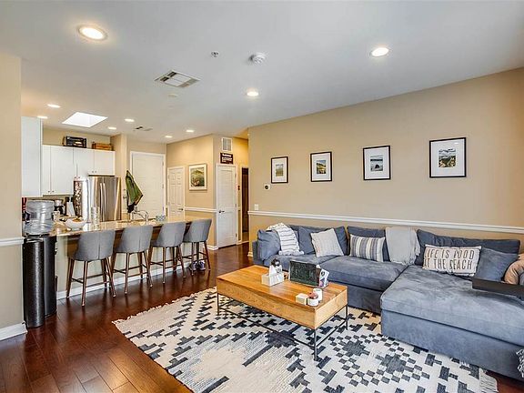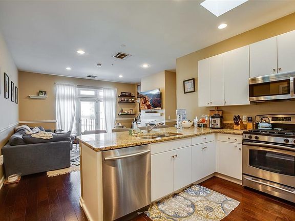 Experience Upper Grand luxury at this 2 bed 2 bath penthouse unit with 9.5 ft ceilings, skylight, new oak floors, built-in gas fireplace and walk-in closets with built-in organizer. This fantastic home with west exposure features a fully equipped kitchen with granite counters and stainless steel appliances. Building features include elevator service, a gym with Peloton bike, community room, and common courtyard. Close to bus/light rail, Trader Joes, and restaurants, and with a new park across the street! One parking spot included, washer/dryer in unit. Copyright Hudson County MLS. All rights reserved. Information is deemed reliable but not guaranteed.