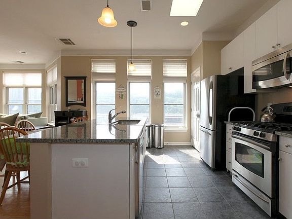 Penthouse 2 br, 2 bath condo in Upper Grand. Bright corner condo w/ tons of windows and natural light plus S and W exposures. Largest 2 br line in building w/ huge great room and dining area. Features fireplace,ceiling fans, bay windows, high ceilings, hwfs, CAC, and w/d. Kitchen w/ SS appliances, granite counters and pantry. Large baths w/ Kohler fixtures, oversized bathtub and master bath w/ his and her sinks. Master br has Juliet balcony. Condo located in steel and concrete building w/ elevator, gym, courtyard and parking