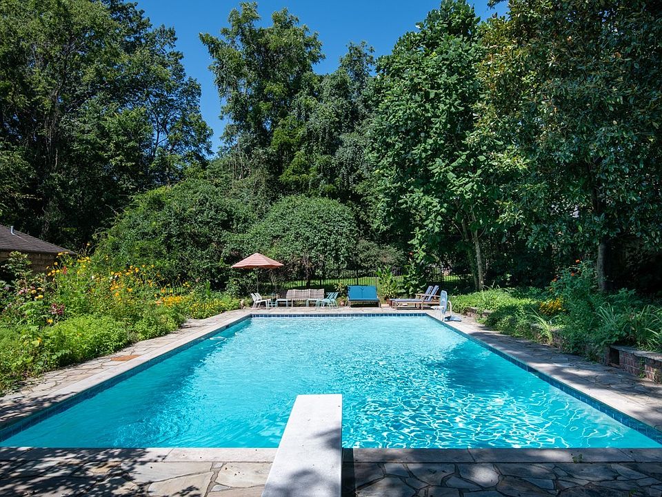 Extraordinary in-town estate property between Belmont/12South and Green Hills. 1.4 acre private oasis featuring impressively landscaped park-like yard (with large mature trees and heirloom plantings), main house, guest house over 3.5 car garage, separate pool house/cabana and full size pool. Historic 1910 Stone Craftsman home balances original charm, clever updates and modern conveniences. 10 ft ceilings, original hardwoods, two fireplaces, office near side entrance, spacious primary up with private balcony overlooking backyard, upstairs central common room off bedrooms w/vaulted ceilings, geothermal HVAC, tankless water heater, and heated tile flooring in all main house baths. Detached 3.5 car garage with 700sqft guesthouse on top. Historic pool house cabana with game room and full bath opens to full sized pool w/ diving board, surrounded by gardens and tree house. Full basement for storage.