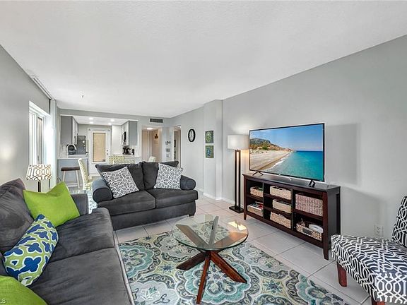 Escape to paradise in this beautifully updated 2-bedroom, 2-bath vacation rental, ideally located on Gulf Shore Boulevard N in Naples coveted Coquina Sands neighborhood. JUST STEPS from the soft sands of Lowdermilk Park Beach, this fourth-floor end unit offers an inviting coastal retreat with modern amenities and an unbeatable location. Inside, youll find a bright, welcoming space with tile flooring throughout and a remodeled kitchen thats sure to impress. The kitchen boasts modern cabinetry, a stylish tile backsplash, quartz countertops, recessed lighting, and stainless steel appliancesperfect for cooking and entertaining. The open living and dining areas flow seamlessly onto a private lanai, where you can enjoy peaceful views and the tranquil Naples breeze.