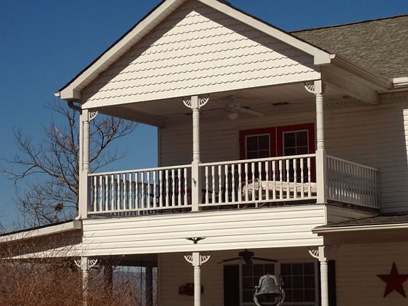 Dropped $5,000! First time on the Market! End of road privacy, 4.99 Acres w/fabulous long range views from 12 foot deep covered porches along 2 sides. Your own peaceful paradise with low maintenance yard. Big Living Room w/wood burning fireplace and antique mantle. Formal Dining Room w/French Doors to the Covered Porches. You'll love the Roomy Kitchen & Eating Area. Upper level has 3 Bedrooms, 2 baths & convenient Washer/Dryer closet. Master Suite has amazing Sleeping Porch, Bath w/relaxing Whirlpool Tub, separate shower, WIC. Separate H & A main & upper levels.