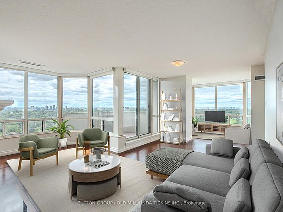 Rarely available 1476 sq.ft. Penthouse suite with wood-burning fireplace & balcony, stunning views of Islington Golf Course & beautiful sunsets. Features 2 bedrooms, 2 full baths, spacious living room & separate dining room, tons of closets, including an in-suite storage room. A 5-star condominium residence with extensive amenities including 24Hr. concierge, indoor full-size pool with hot tub, gym, tennis, pickleball, squash courts, fitness classes & social events, newly built courtyard with BBQ, beautiful gardens, all offering unparalleled resort-like ambiance, all-inclusive maintenance fees! Parks & creek nearby providing walking paths & people-watching. Steps to Islington Village with trattorias & shops, RABBA shop conveniently next door for last minute items & meals, 12 minute walk to Islington subway & Bloor St. with its many shops & dining, 20 minutes to financial/theatre districts & near some of Toronto's best golf. There are still some timeless, friendly, old-fashioned village settings in Toronto & this is one of them. Photos have been virtually staged.
