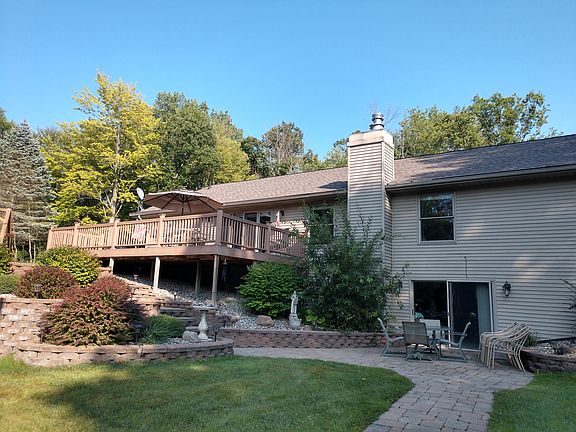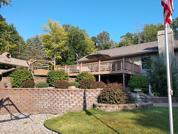 Wixom Lake 355' canal waterfront just seconds from the main lake best of both worlds. Privacy on 3.40 acres beautifully landscaped 4 bedroom, 2.5 half baths with a full finished walkout wood basement makes it dry, warm & cozy with a natural gas free standing natural gas fireplace operated with a thermostat. Open concept kitchen, large dining area opens up to the living room & both offer magnificent views of the canal. Full kitchen in walkout with new red cedar bar tops, new kegerator and beverage center. Fourth bedroom in lower level, office and extra room for storage or a work out room. Storage underneath steps. 30x60 pole barn heated in the big part & will hold a large RV. New roof 2015, new furnace 2017, plus a 16k whole house generator. All new exterior lights fixtures on house & pole barn. Brand new water softener & reverse osmosis. Boat lift with new motor, steel seawall & dock 2017. Professional landscaping, stone paver patio & walkways, trex decking, irrigation system