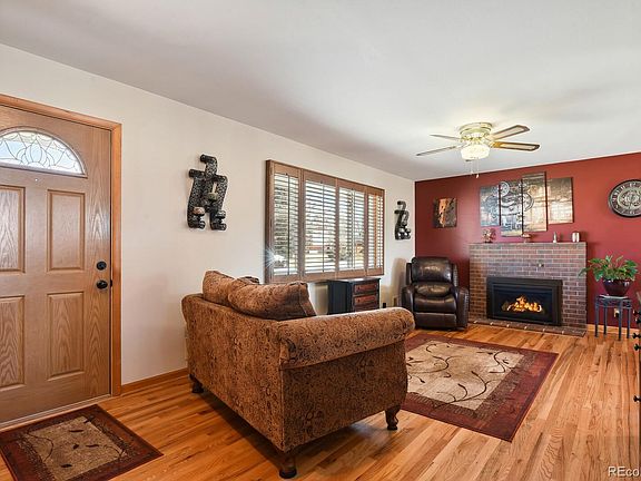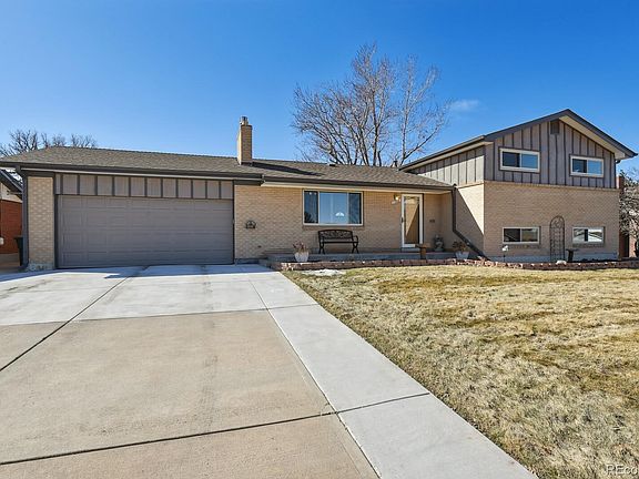 The flowing design enhances the sense of space, offering a spacious master with two additional bedrooms upstairs with a full bath, along with a hardwood floor family and living room and a modern kitchen complete with a garden window. The main floor family room has a gas fireplace, gleaming hardwood floor and windows galore. Outside, you'll appreciate the mature landscaping, cozy front porch, raised garden beds, covered patio, fire pit, fully fenced and huge trees. This property also features an oversized 2-car garage, mature trees, mostly brick exterior, and an extra concrete strip for additional driveway parking and a service door. With fresh paint, updated windows, newer furnace, newer roof and extremely well taken care of this move-in ready home is ready for you to settle in quickly. Nestled in a quiet family-friendly neighborhood with NO HOA's, Plus Mountain Views, you are minutes away from Adams 12 Schools, major highways, shopping centers and a massive park with a bike path. Schedule your showing today and experience the perfect blend of mid century modern, comfort and convenience.