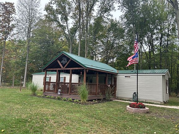 Pymatuning Lake area home located less than 3 miles from the Snodgrass Boat Launch. Situated on 4 lots, this 3-bedroom, 2 full bathroom home is the peaceful retreat you’re searching for. Recently manufactured and move-in ready, this home is perfect for full-time residence or a getaway home. The front covered deck is perfect for entertaining or relaxing in the great outdoors. Enjoy fires in the firepit and the peace of mind that comes with having a fenced in area for 4 legged or young friends/family to play. The interior offers a cozy open floorplan with a propane fireplace in the living room, master suite and the convenience of a washer and dryer. A detached 12'x20' shed offers storage solutions for outdoor hobby gear. Make this charming home your Pymatuning retreat and enjoy the peaceful lake life.