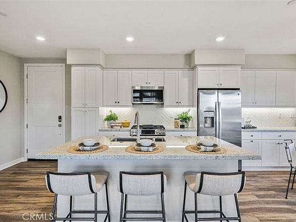 A spacious open floorplan shared between the living room, kitchen and dining space is the heart of this single-level flat, offering a comfortable retreat for communal gatherings with family and friends. Two bedrooms provide plenty of space for young professionals, couples, empty nesters or small and growing households. Please see New Home Consultant for garage location and details. Portico is a collection of single-level flats at Rienda located in the Rancho Mission Viejo masterplan. Residents enjoy exclusive masterplan amenities including pools, trails, schools and sport courts, in addition to new recreational experiences at Ranch Camp within Rienda.