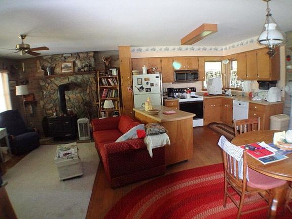 This private cottage is the in the woods with a nice long range view. Sit and rock on the covered porch and have not a care in the world. After hiking, enjoying the wild flowers or splitting wood for your wood burning stove, take a shower in your outside shower before calling it a day.The living, dining and kitchen are all open with an island to seperate the rooms.The floors are rustic wood and the walls are pickled wood.Behind the wood burning stove is a stone wall with stone hearth. This cottage is cute and cozy and I know you would be proud to call it home or your vacation cottage.
