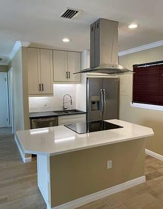 Adorable remodeled Three Bedroom - Two Bath cottage home available NOW. All 8X18 ceramic wood plank tile floors throughout, brand new kitchen and appliances, washer/dryer, two renovated full bathrooms, ceiling fans, and a screened in patio all beautifully set on a large lot with plenty of parking. This adorable home is located off Bahia Vista and Shade Ave in a very quiet and friendly neighborhood with direct access to Downtown Sarasota, the YMCA, beaches, shopping and dining. Unfurnished annual lease, tenants pay utilities, no smoking but pets welcome (pet deposit and renter's liability insurance required). Tenant responsible for utilities. Owner will handle lawn, landscaping.