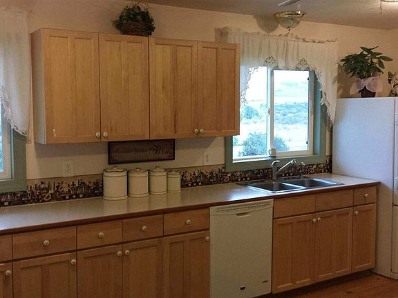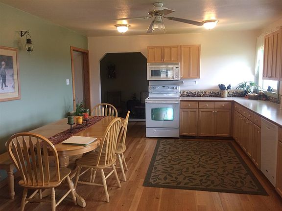 Priceless views of the Beaverhead Valley & overlooking Dillon. Spacious eat-in kitchen w/ lots of storage & beautiful hardwood flrs , living rm offering lots of natural light. 2 bedrms on main w/ full bath & 1/4 bath. Built-in coat rack w/ storage in entry area, main flr laundry. Full basement w/ family rm, 2 bedrms, remodeled full bath, utility area w/ office, lots of space & storage. Detached garage w/ plenty of rm & bench area, greenhouse/shed, an oasis; mature trees, shrubs etc w/ awesome views.