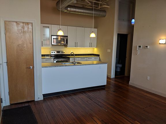 Beautifully appointed one bedroom apartment in the heart of downtown on Main Street across from the Community Market. Red Star Flats is a restored 1915 warehouse featuring exposed brick and structural members such as heavy timber beams and columns combined with modern styling including stainless steel appliances, contemporary lighting, and granite counters. Amenities include: full size washer and dryer fully tiled baths hardwood flooring large windows an open floor plan that maintains a cozy feel off street parking Please see the floor plan and take a virtual tour at redstarflats.com Owner pays water, sewer, trash. One off street parking space included.