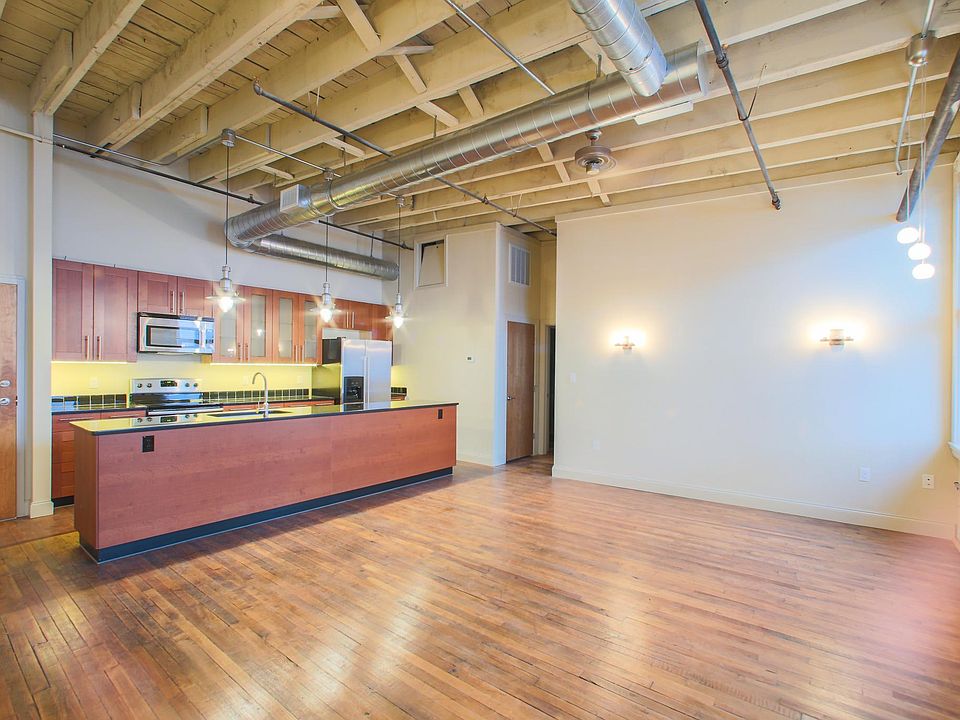Beautifully appointed one bedroom with den apartment in the heart of downtown on Main Street across from the Community Market. Red Star Flats is a restored 1915 warehouse featuring exposed brick and structural members such as heavy timber beams and columns combined with modern styling including stainless steel appliances, contemporary lighting, and granite counters. Amenities include: full size washer and dryer fully tiled baths hardwood flooring large windows overlooking Main St an open floor plan that maintains a cozy feel off street parking Please see the floor plan and take a virtual tour at redstarflats.com. Call us today for a showing! 1 year