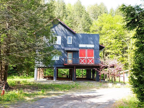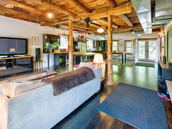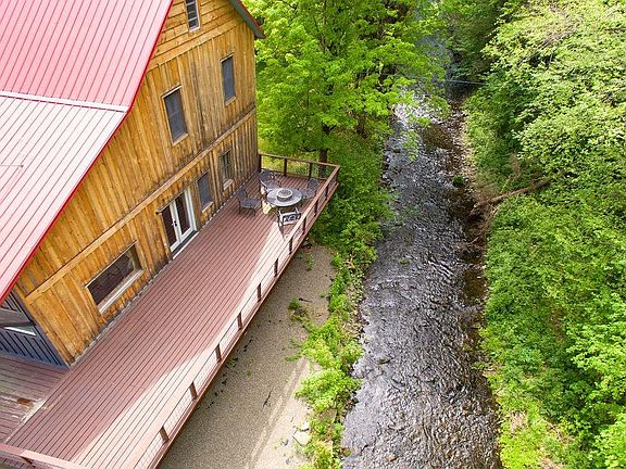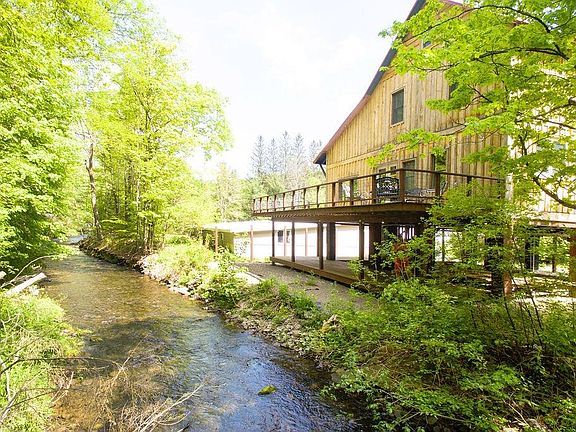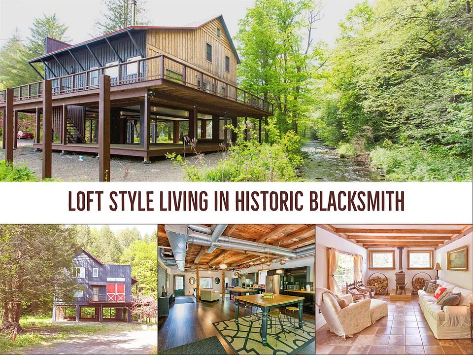 LOFT STYLE LIVING in the Catskills! Rare opportunity to own the historic blacksmith building in Fleischmanns. Redesigned into a stylish 2BR 2BA two-story loft-like country escape. Raised above the river on concrete piers allows you to enjoy stream side living without the fear of flooding. The large open floor plan is perfect for entertaining. The original character of the building has been kept and shows through exposed hand hewn posts, ceiling beams and wood floors. There is more raw space available just waiting to be transformed into more bedrooms, an artist work space or storage.