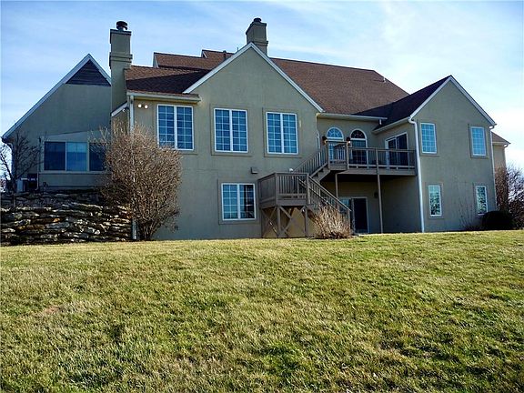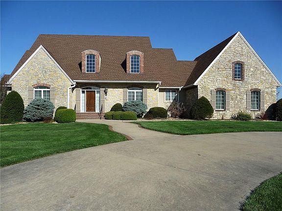 Beautiful Estate! Best View in Warrensburg! Watch the sun set over acres of rolling land and trees. Square footage of the house alone make this real estate a bargain and then add in the features of this custom built home with large rooms and high ceilings and grand staircases. And it is located in under one hour to the heart of Kansas City, where this size of home is selling for over $1,000,000. We have Brazilian Cherry wood in the large kitchen and hearth rooms, beautiful curved staircases to upstairs and downstairs, open dining and living rooms, main floor master suite that includes 3 rooms plus 2 bathrooms (use to your choice; 2 bedrooms, an office, nursery or hot tube room-you decide), the upstairs offers open areas for library/sitting/play area and two totally private full bedroom suites with their own baths (also unusually large storage areas-unbelievably large!), the downstairs offers another bedroom with full bath, large game room, wet bar area, oversized family room w/fireplace and of course more storage areas (including a large cedar lined closet w/hidden vault) and doors to private patio. There is also a spectacular Sun Room with moveable ceiling panels including w/heat and AC. Large Garage with 3 electric doors. There are additional 11+ acres available priced separately at $120,000 but with the house can be purchased for a total of $795,000. Sellers have made a serious price adjustment so you can move right in this house or change colors as you desire. Make this your home for your enjoyment and entertaining. Best View in Warrensburg. Great Location!!