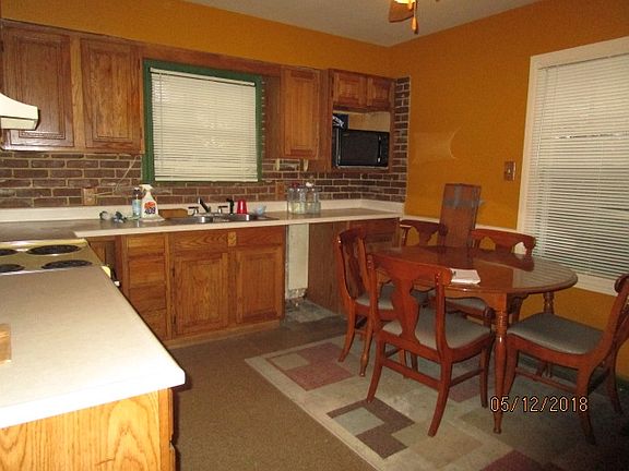 Home located on corner lot in convenient location. Enclosed front porch. Side patio Eat-in kitchen includes range, refrigerator, fan hood and microwave. Also washer and dryer included. Full basement for extra storage. 1 car detached garage. Home needs some updates and TLC but has great potential!