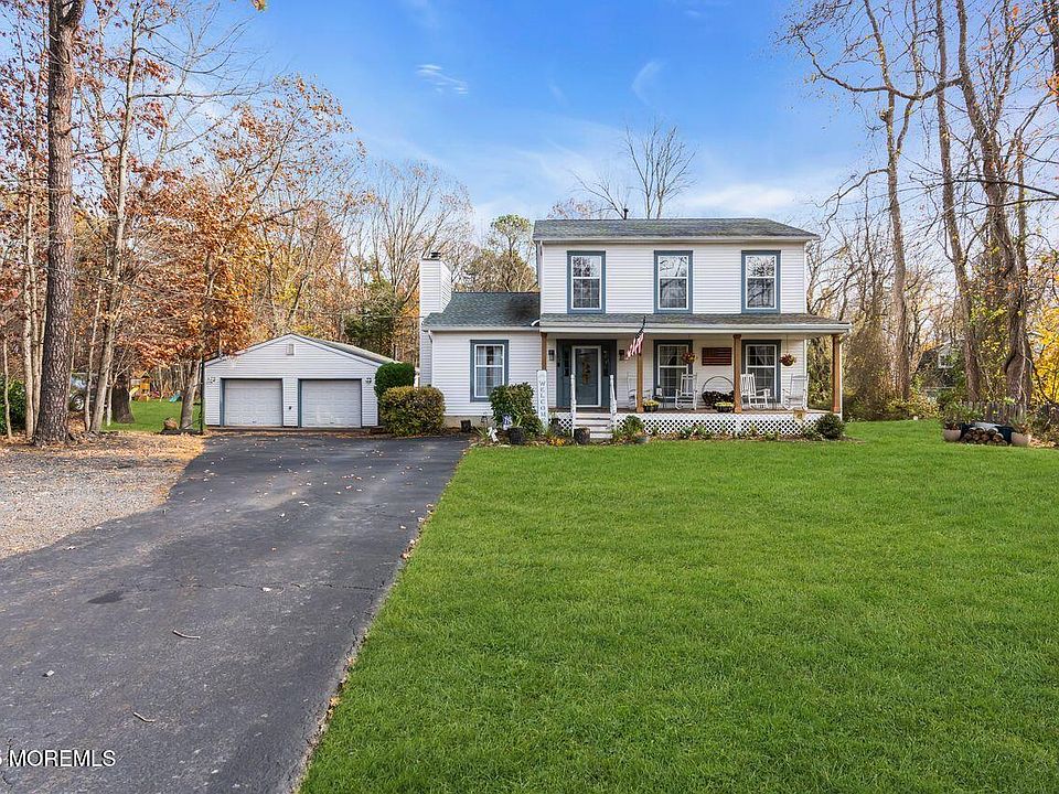 Nestled on a spacious 1.14-acre wooded lot in the heart of Howell, this charming country colonial home offers a perfect blend of comfort and style. Built in 1993, it welcomes you with a generous covered front porch, ideal for lazy afternoons sipping coffee while enjoying the serene surroundings. Inside, the kitchen boasts ample cabinets newer appliances and Quartz countertops making everyday living a delight, while the 2-car garage adds practical convenience for busy families. Howell is a highly desirable community that strikes an enviable balance between suburban tranquility and modern accessibility, with thriving retail corridors, expansive natural lands, and working farms that give it a refreshing rural vibe. Residents love the safety and sense of community here.