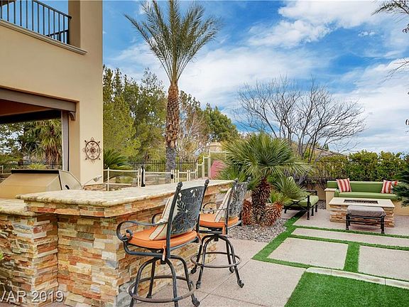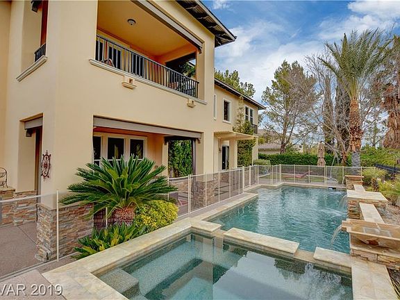 Stunning former model on best cul-de-sac lot in the community adjacent to park & fountains. Dramatic entry offering award winning open floor plan. Gourmet kitchen w/designer stainless steel appliances, custom cabinets & huge island. Backyard oasis with sparkling pool, spa & BBQ. Lots of upgrades: Casita, wood flooring, stone flooring, stamped concrete, quiet court yard. 1 Bedroom, office & kids playroom on 1st floor. Stunning master, strip views