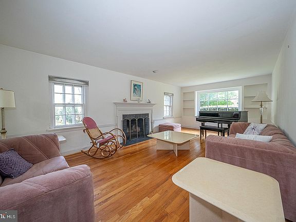 A lovely Colonial situated back from the road. It is just shy of a 1/2 acre (rare in Narberth). Great deep private backyard. Between the house and garage is a covered breezeway giving an easy access to side door. An enlarged driveway allows for easy turn around to exit onto street. Center Hall with stairs, coat closet and powder room. The living room has a wood burning fireplace (never used by current owners. A large picture overlooks the backyard - there is shelving on either side of the window. The full dining room leads you to the enlarged kitchen with family room and eating area. The kitchen has white cabinetry and stainless steel appliances - gas cooking, double porcelain skink. A desk area is built in. The kitchen is open concept with large family room, windows, skylight and exit to large deck overlooking very deep back yard. Hardwood floors throughout the house except for tile in kitchen, family room and baths. Exit kitchen to breezeway and garage. Ensuite main bedroom - walk in closet and full bath with stall shower. The bedroom is carpeted. Two additional bedrooms, one with wall of shelving. Hall bath has tub shower - Full basement with laundry and mechanicals. Walking distance to Narberth and Wynnewood and L.M.H.S - sidewalks all the way.