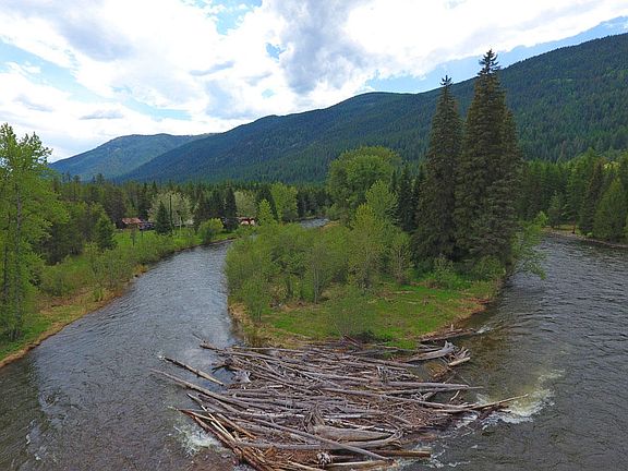 Riverfront Retreat~ 39.96 scenic acres w/ over 1300' of Moyie River Frontage AND includes a wooded 5+ acre private island~ Also includes a rustic 1780sf 2BD 2BA ranch style log home w/ an open, flowing floor plan & lots of wood accents. Private well, private septic, electric FA & wood stove. Det 2 car garage, 28x36 barn & several outbuildings. Would make a perfect retreat; private or corporate; multi family compound or even camp. Borders hundreds of acres of USFS lands + a stones throw away from Sinclair Lake. True outdoorsman's paradise w/ paved county road frontage! Suburban zoning; 2.5A minimums; possible development potential! Nestled in the trees on the bank of the majestic Moyie River. Large riverfront parcels are a rare find, don't let this opportunity pass you by.