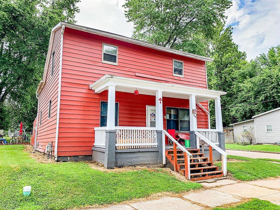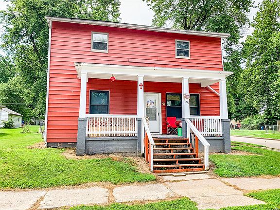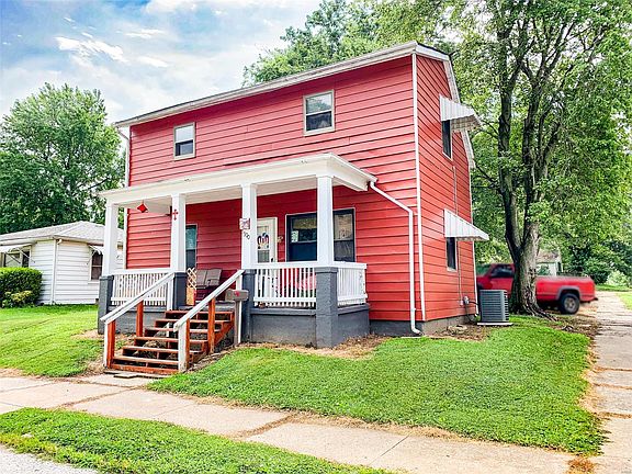 Opportunity in this two story old school house style charmer- with easy walk to grade school! Welcoming front porch highlighted by the farmhouse red siding, curb appeal potential here is huge! Great ceiling heights throughout. Large living room space with natural light through full windows. Main floor bath with room to expand. Great eat in kitchen space and huge mudroom entry from two car garage. Upper level bedrooms with full bath and bonus storage closets. Updated electric and water heater, large basement, fenced yard! Great space and location- cheaper than rent! Easy access to Lebanon Ave connectors to Scott Air Force Base, Downtown Belleville and metro link access.