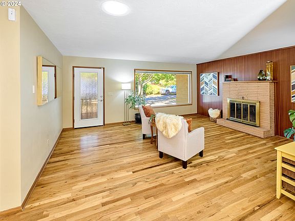 Beautiful mid-century gem on a large private lot in a quiet, neighborhood loop with no through traffic. This home has a phenomenal flow inside and out w large sliders in the primary bedroom and dining room that lead to the gorgeous, covered patio w wood slat ceiling and skylights. Expansive windows and multiple solar tubes fill the space w natural light. Solid oak flooring in the living room, dining room, hall and 3 bedrooms. Kitchen was just updated w new quartz counters, undermount sink, new sink hardware, new dishwasher and new flooring. Don’t miss the huge walk-in pantry and convenient pull-out drawers/racks in all the lower cabinets. Fantastic primary suite w a huge walk-in closet w built-in organizers and large bathroom w full walk-in shower and heated tile floors. Laundry room has a sink, folding rack, plenty of storage shelves and is conveniently located right off the primary bedroom closet. Main bathroom has a brand-new tub surround, new shower/tub fixtures, new flooring and a large solid surface counter w incorporated sink. New 50-year roof and gutters in 2023, New water heater 2024, A/C unit installed in 2022, rare ¾” cedar lap siding all the way around w 2ft eave overhangs (they don’t build them like that anymore!), oversized garage, huge flat driveway, room for RV parking and an abundance of mature fruit trees & shrubs that include apple, pear, fig, mulberry, blueberry, honey berry, strawberries, raspberries and grapes. This one has it all!