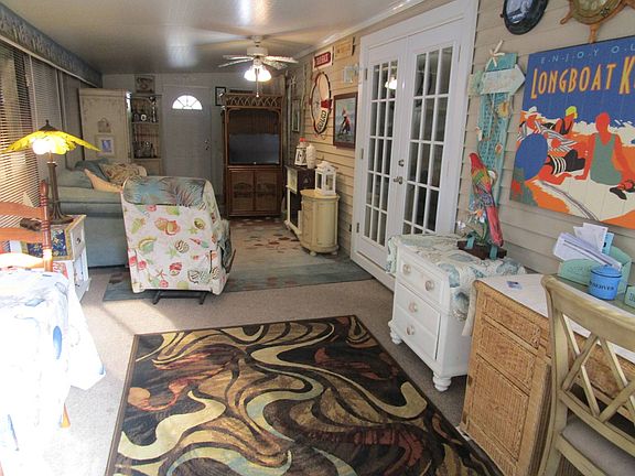 Beautiful nautical theme home! This turnkey is move in ready! The profit margin with Airbnb or VRBO is out of this world! People are netting $15,000 over expenses in this community renting by the day, weekend, week, or month; I've seen their books! As you can tell, the seller's spared no expenses when they bought this beauty! They had new laminate flooring added to the tune of $2,000, French doors $1,600, extra-long brick paver driveway $2,000, washing machine and dryer $1,500, custom granite countertops in the kitchen and bathroom $1,500, new front and back entry doors $500, new gas stove $1,000, new flat top grill and gas/charcoal Kettle grill both together $1,200, deep freezer $500, refrigerator $500, beautiful full patio set including bar and stools $2,000, two 3-wheeled bicycles $500, and pressure washer/tools in shed $2,000. That doesn't even include all the nice furniture she's added to this turnkey! She's even got mixers and kitchen gadgets still in the boxes she hasn't even used yet! Whoever gets this home is already set! Just bring your clothes and stop at the grocery store. This home is located steps from the pool, hot tub, fitness center, billiards room, putting green, tennis courts, pickle ball courts, club houses, splash pad, playground, and all the other amenities and activities. There's even a wood shop club you can join! Call Steph today to schedule your tour before this beauty is gone! Rambler's Rest Resort has a heated pool, hot tub, fitness center, library, 3 club houses, 100 monthly activities, and is located right on the Myakka River complete with private boat ramp and storage facilities for our residents and their boats and all their other grown-up toys! This is the best of both worlds folks! We're located on the Myakka River and the beach is only 10 miles away! As a matter of fact, you can get to the beach either by boat on the Myakka or drive there!!