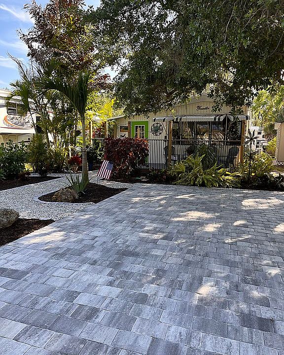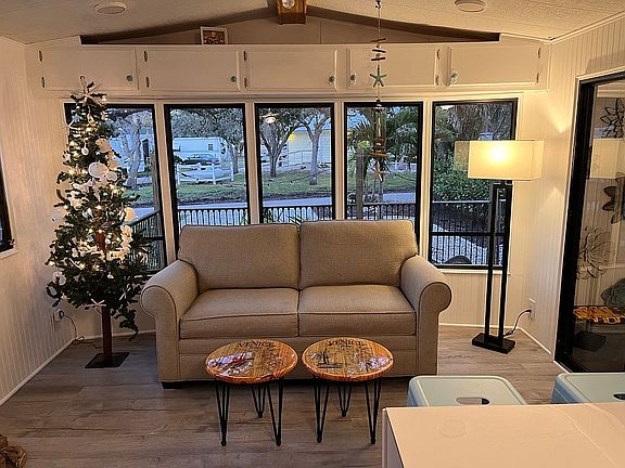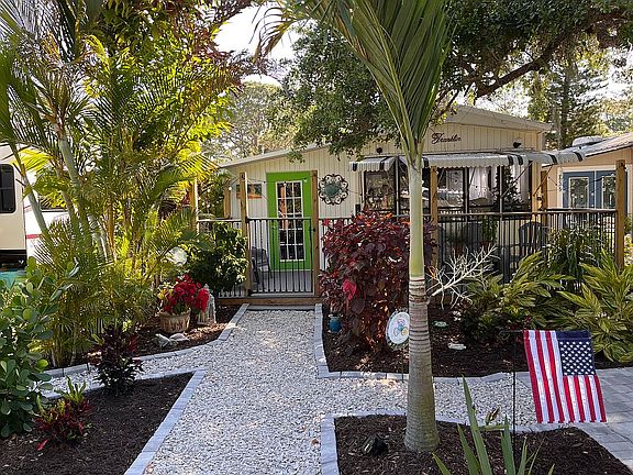 Beautiful Park Model Trailer in Venice, Florida! Escape into a bit of heaven, tucked away in a landscaped paradise! This newly renovated trailer is situated in Ramblers Rest RV Resort in Venice, FL, only 20 minutes from several beaches, close to many restaurants, and the quaint downtown! No work is required: New roof, new mini split heat/ac, new subfloor in lanai, new flooring throughout lanai and trailer, second bedroom created in lanai level, new ac unit there, landscaped paradise, new deck and railing, new paver patio in back, new paver driveway/parking area front, new bead board in trailer, new electric hot water heater, new refrigerator, new lower cabinets in kitchen. The bath had been redone before we purchased it. $97,500 includes furniture and golf cart