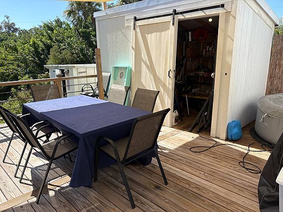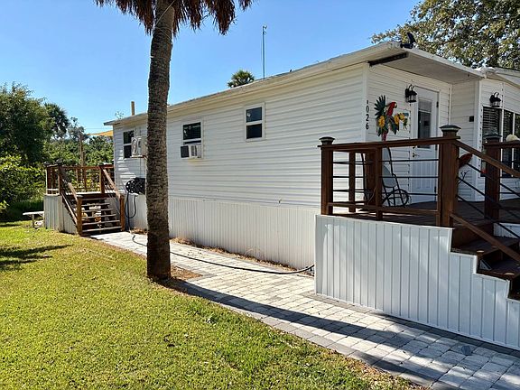Renovated Two-Bedroom Cottage by the Water This beautifully designed turnkey cottage is far from ordinary. Raised to one level and fully renovated, it offers both flexible owner living with seasonal rental potential, making it the perfect blend of lifestyle and investment. From the moment you arrive, the spacious front paver driveway welcomes you with room for two cars and a golf cart, while the pavers continue along the side of the home, leading to a private rear deck. The large front porch, furnished with plenty of chairs, is ideal for enjoying the neighborhood atmosphere and visiting with friends as they stroll by. Inside, every detail has been thoughtfully updated. New subfloors and vinyl plank flooring run throughout, complemented by three mini split units for efficient heating and cooling, all just two years old. The living room is cozy and inviting, furnished with a reclining sofa, an overstuffed chair, and a wall-mounted TV-perfect for settling in to watch a movie. Several nearly floor-to-ceiling windows flood the space with natural light, creating a bright and cheerful atmosphere. The bathroom is a showpiece, featuring a space-saving pocket door, glass shower, and a stylish vanity with a breezy, beach-inspired feel. Down the hall, the guest bedroom is furnished with a queen bed and nightstands, while the master bedroom offers another queen bed, a double closet, and built-in night shelves. The kitchen and dining area are impressively spacious, with room for a full table and chairs, including a pantry, and cabinets galore. A double sink sits beneath a window, butcher block countertops add warmth, and stainless steel appliances-even a dishwasher and five-burner stove-make cooking a pleasure. Everything you need to move right in is included, from pots and pans to dishes and décor, all illuminated by recessed lighting. Step out the rear door and you'll find a large private deck designed for entertaining. A table for eight sits beneath a sun shade, perfect for outdoor dining and BBQs. A generous storage shed with an extra refrigerator, along with a second shed tucked beneath the deck, provide ample space for all your extras. On the side of the deck, a full-size, covered washer and dryer add convenience. Additional upgrades include five new double-pane windows, a new breaker box, and insulation, ensuring comfort and efficiency year-round. The closet doors are presently being installed. This cottage is truly turnkey, offering everything you need to enjoy coastal living immediately. Whether you're seeking a seasonal rental or family vacations, this home delivers charm, functionality, and modern style in one package. Ramblers Rest offers a wealth of amenities with no age or pet restrictions, making it perfect for snowbirds seeking peace and quiet or families looking for fun during school breaks. The park is easily accessible from I-75 and is within reach of three airports in any direction. Enjoy access to a boat ramp, storage, and a fishing dock on the Myakka River, as well as a clubhouse, pool, spa, splashpad, pickleball courts, tennis courts, horseshoes, and a putting green. There's also a wood shop, fitness center, and a variety of other activities to enjoy. Nearby attractions include the Atlanta Braves minor league stadium, which serves as a fantastic entertainment venue, along with Costco and a farmers market conveniently located on your way in. Because Ramblers Rest limits residency to six months, the rental possibilities for this home are endless with park approval. All listing information given to us is considered appropriate and reliable but should be independently verified through personal inspection by appropriate professionals. Home must be maintained to the Community Prospectus. The lot rent is determined by the Community office and covers all amenities offered including property taxes and lawn maintenance.