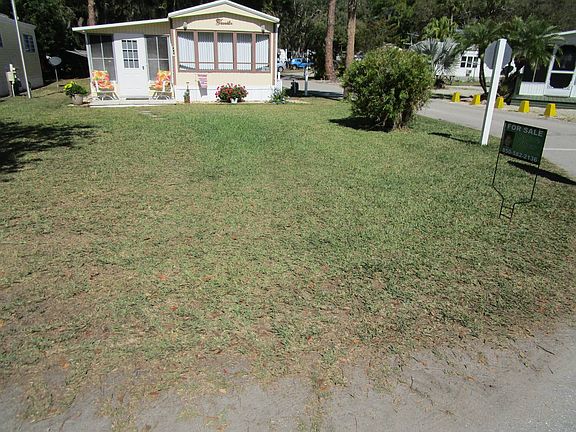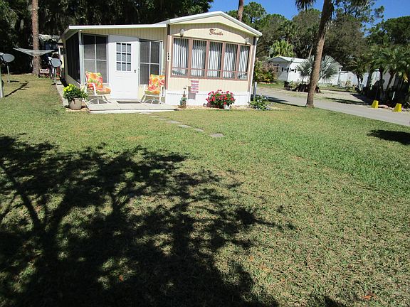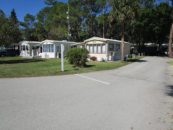 Corner lot just steps from the huge, heated pool and club house! Not to mention all the other amenities such as hot tub, tennis courts, pickle ball courts, billiards room, and much much more! As you can tell by the pictures, this seller has added everything one would need to have fun in the sun! Everything you see goes with the sale of the home except for personals. There's even a gas firepit on the private rear deck, along with the bar to serve your guests! The seller added custom blinds to the tune of $1,000, a ductless split air conditioner $1,000. They added a hard roof to the lanai and a rubber roof-over on the home (both of which have a lifetime warranty) to the tune of $9,000. They added the rear party deck $3,000 and furnished it with bar, deck furniture, gas firepit, waterfall, and gas grill adding another $3,000. They bought a new stove for $600, two new entry doors for $1,600 and also had all the lanai window film replace for an additional $1,000. As you can see, the seller spared no expense to have that perfect place to get away from the cold weather. This can all be yours if you hurry! Call Steph to schedule your tour today! Rambler's Rest Resort has a heated pool, hot tub, fitness center, library, 3 club houses, 100 monthly activities, and is located right on the Myakka River complete with private boat ramp and storage facilities for our residents and their boats and all their other grown-up toys! This is the best of both worlds folks! We're located on the Myakka River and the beach is only 10 miles away! As a matter of fact, you can get to the beach either by boat on the Myakka or drive there!!