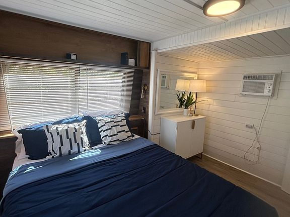 Beautiful Tiny House/Model home is available for rent in a Lovely Rambler's Rest Resort Community. This home is available fully furnished with 1 Bedroom (1 queen bed- sleeps 2), 1 Bathroom, Living Room (reclining sectional- sleeps 2 more Nook (dining table set for 4) and Kitchen. It comfortably sleeps 4. Also offers a covered lanai with a sectional and a back porch table, bbq and greenbelt in the back for privacy. Also has a shed available for storage use. Rambler's Rest Resort sits comfortably between I-75 and Tamiami which offers easy and fast commute around. Resort has a large, heated community pool, spa, picket ball, splash pad, playground, pool table, exercise room, trails for biking, canoes and fishing spots, laundrymat and lot of activities and community events. Rent includes utilities: water, sewer & electricity. Fully furnished Pets are welcome with $50/monthly rent No smoking inside Rent term available, price varies: monthly, 3 months, 6 months, 1 year. Rent price difference with the lease term.