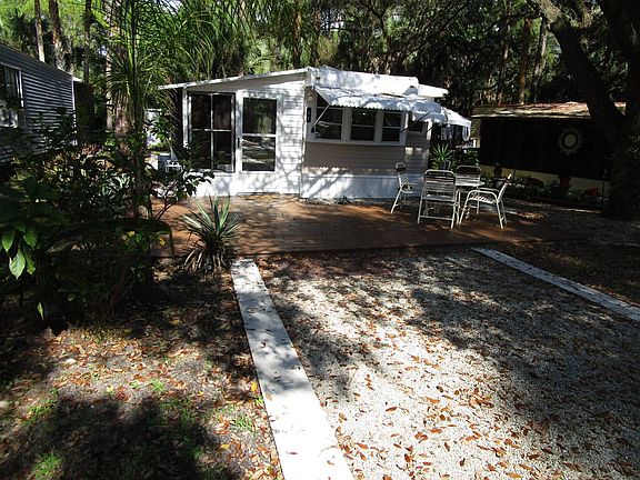 This cute turn-key home is the perfect location for you to spend your winters! It was renovated approximately 3 years ago which includes the following upgrades: new roof-over; new stove; new fuel lines to stove; new refrigerator; new bed; installed new front deck and repaired back deck; new clothes washer. Truly Nolen has been contracted to insure no bugs. This is a must see! Rambler's Rest Resort has a heated pool, hot tub, fitness center, library, 3 club houses, 100 monthly activities, and is located right on the Myakka River complete with private boat ramp and storage facilities for our residents and their boats and all their other grown up toys! This is the best of both worlds folks! We're located on the Myakka River and the beach is only 10 miles away! As a matter of fact, you can get to the beach either by boat on the Myakka or drive there!!