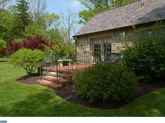 'Valley Hi' is an English Tudor Manor Home that sits on 3.2 pastoral acres overlooking the Valley Creek Preserve. This 60 year old home has all of the accents and architectural interest one would expect for the style. There is a slate roof, stained glass windows, and classic lines that define this home's character. Enter into a grand center hall that leads to the dramatic fireside living room with floor to ceiling wood paneling and sweeping views of the grounds and countryside. The formal dining room is gracious and inviting. The kitchen opens to a breakfast room with sliders to a large screened-in porch and patio grilling area. The first floor master suite has a paneled dressing/sitting area with a fireplace, a bath with whirlpool and walk-in shower and a beautiful bedroom with a palladian window and private brick patio. There is a beamed ceiling den adjacent to the master bedroom and another full bath. The second floor has 4 generously sized bedrooms and 3 full baths with a back staircase to the kitchen.