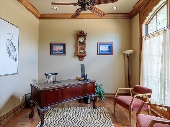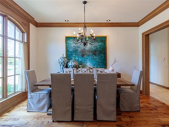 Luxurious living could be all yours with this incredible custom Matt Wilson home in Edmond's Fairview Farm community! Completely remodeled by the designer in 2009, it's been beautifully updated and impeccably maintained. Inside, discover maple woodwork throughout, from the elegant molding and trim to the pristine hand-scraped floors. Arched windows spill light across your formal dining room and office, both located off the foyer. Bespoke storage units flank the stately fireplace in the bright, inviting living room. Avid cooks love the kitchen with its stainless steel appliances, handsome cabinetry, and cheerful breakfast nook. Guests have first-floor ensuite quarters with a separate entrance, while there are three well-sized bedrooms and two full baths upstairs. There’s also a theater with a wet bar, dual bonus rooms, and a veranda overlooking your backyard oasis. An expansive deck and a pool with a spa are ideal for outdoor entertaining. Come take a tour while it's still available!