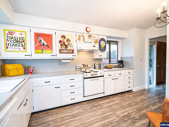 Spacious home in the heart of McMinnville - walking to downtown shops and restaurants. 4 bedrooms and 3 bathrooms - 2 bedrooms and 2 baths on the main floor, one includes a walk-in shower in the primary bedroom suite. Warm, crisp white kitchen, cozy wood burning fireplace in living room, additional features - 2 hot water heaters, RV parking, fenced back yard with deck - plus a firepit!
