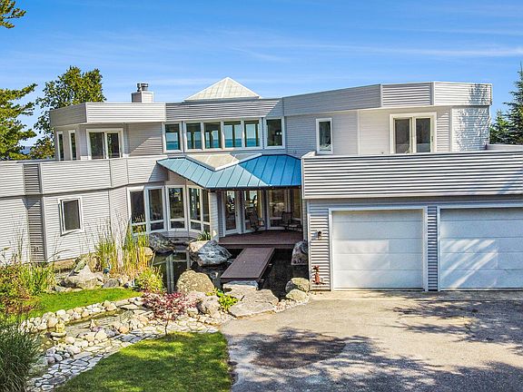 Must see to believe. One of the most unusual homes in the area. Has tiled floors, Infloor heat. The entire front is glass with views of Lake Huron and the Straits, Decks comparable to the Grand Hotel and a Sandy Beach to die for. Also completely fenced in with privacy fence with gate. Has its on small stream running through the land into Lake Huron. Koi pond in the rear of the home. Stepping Stones lead to the main entry. Just come and see it. Too much to describe.