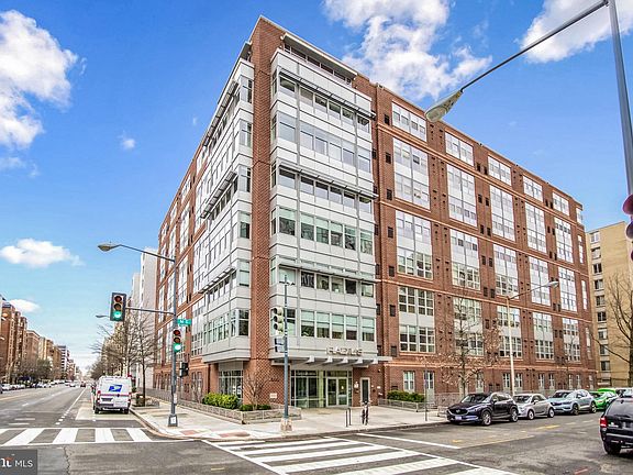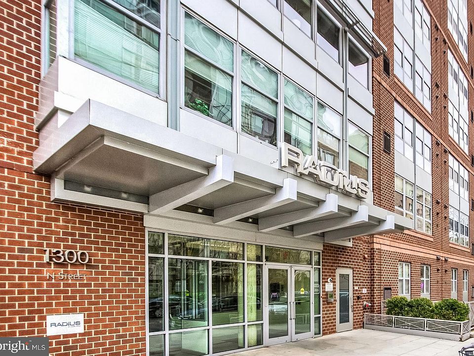 Experience modern city living in this high-floor, 1-bedroom, 1-bathroom loft-style condo located in the sought-after Radius Condominium. Nestled in the heart of Logan Circle, this bright and airy unit features soaring 10-foot ceilings and oversized windows, offering East-facing views along 13th Street. The open-concept layout includes a contemporary kitchen with stainless steel appliances, gas cooking, quartz countertops, and abundant cabinetry, flowing effortlessly into the dining and living spaces. The spacious bedroom offers a well-designed walk-in closet, a linen closet, and an in-unit washer and dryer for convenience. Updated bamboo flooring runs throughout the home, adding a touch of elegance. This property also includes an assigned garage parking space and additional storage, ensuring ample comfortable city living. The Radius Condominium offers a range of premium amenities, including a staffed front desk with package tracking, on-site management, a business center, a fitness center, a landscaped courtyard with grills, and a party room. Situated just steps from the bustling 14th Street corridor, this home is surrounded by top-rated restaurants, coffee shops, Whole Foods, Trader Joe’s, VIDA Fitness, and vibrant nightlife. With excellent walk, bike, and transit scores, this location offers great convenience and connectivity.