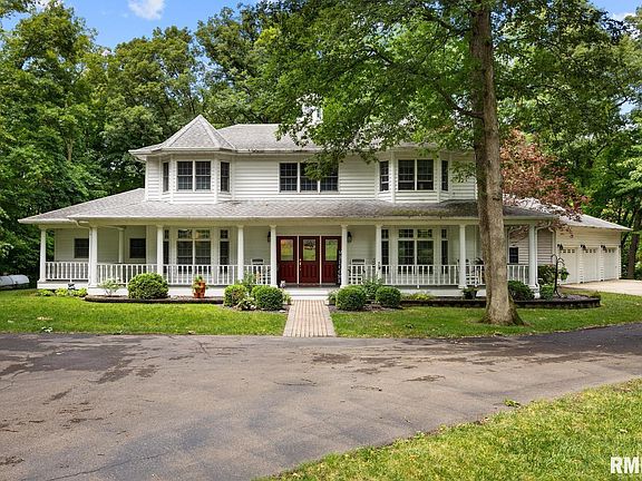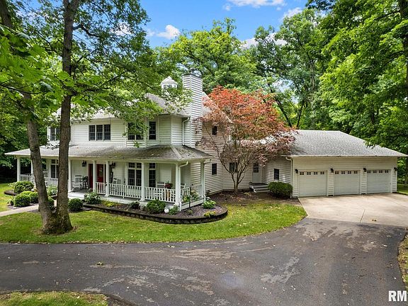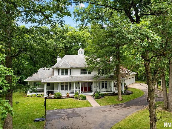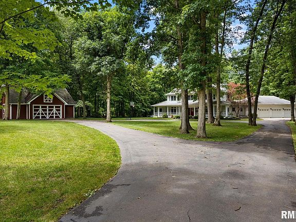 Rare find! Incredible Kent Worthington custom built 5 BR, 4 full baths, 2 half bath home sits back on beautiful secluded 2 acre lot. Striking entryway with tons of natural daylight. Brand new carpet on stairs and upper level open space. Gorgeous open kitchen with Hickory cabinets, granite counters, GE monogram/profile appliances, enormous walk-in pantry. The 3 seasons/sunroom adjacent to spacious Primary suite, boasts pine walls and ceiling and gorgeous views of the private, wooded backyard. 3 fireplaces, finished basement with kitchenette and HUGE workshop space, 2 Primary ensuites, large outbuilding with heat & electric, amazing covered front porch and curb appeal! . D51 Schools. Don't miss this one!