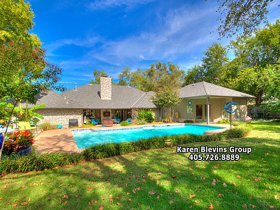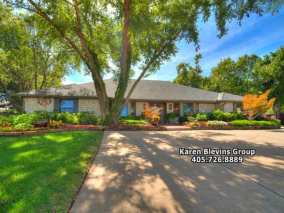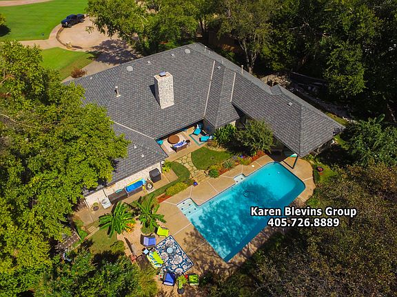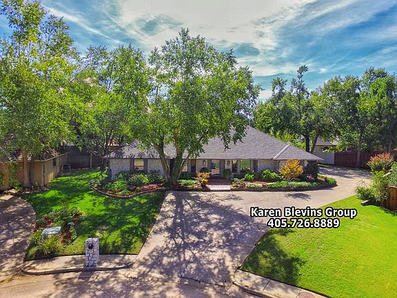 For Immediate information, call listing realtor, Karen Blevins at 405.726.8889... Captivating home on a quiet cul-de-sac in desirable Oak Tree Golf Community! Space and luxury abound in this remodeled beauty! Enter through the manicured landscaping into the bright open living area with gleaming wood floors and stone fireplace. Through the two sets of glass doors, the spectacular backyard and pool are in full view from the moment you walk in. The updated kitchen features double ovens, abundant storage and granite counters. With the perfect blend of comfortable living and ultimate entertaining, this home boasts two dining areas, three living areas and a large wet bar. The master bedroom offers a massive walk-in closet and large en suite bathroom. Retreat to the quiet and secluded study with built-in desk and cabinets. The back patio, yard and pool offer the perfect backdrop for gathering friends and family. Oversized bedrooms, plentiful storage and built-ins throughout. A gated community with 24/7 guarded entry. Oak Tree National Golf Course. Welcome Home!