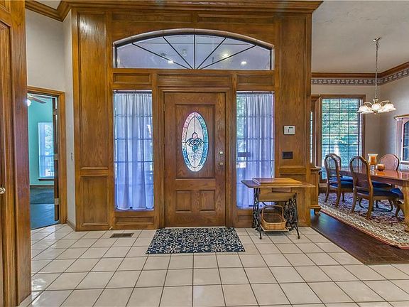 This clean, well-maintained home is located on large corner lot with beautiful mature trees. When you enter the home, you will notice striking woodwork and beautiful living spaces. The formal living is large and includes a custom-built bookcase along one wall. The kitchen features a gas stove, island, and ample counter and cabinet space for the chef in the home. The living room boasts more storage cabinets, gas fireplace, and is partially open to the kitchen. The master bathroom suite includes double sinks, whirlpool tub and newer shower. The master closet has several built-in drawers and storage areas. 2 bedrooms share a Jack and Jill bath and home has solid core doors. The 4th bedroom is currently being used as an office and has an attached bath. The utility room includes a sink and area to hang clothes. The 3 car garage includes in-ground storm shelter. Back patio is perfect for morning coffee. All the storage space this house has to offer will amaze. Quite established neighborhood.