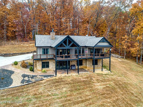 Welcome to 1300 Oren White! Nestled in the picturesque Carters Chapel area of Lenoir City, this 5 Bedroom, 4 Full Bath Basement Ranch home is a perfect example of refined living! As you step into this custom built home, you discover that even the smallest detail has been meticulously designed & nothing has been missed! Details like the over-sized bedrooms, custom shelving in every closet, the large, custom Pantry, the not one but two large stone fireplaces, the soft close kitchen drawers, the granite, the custom shelving in the Garage, the tongue & groove ceilings, & the exquisite trim & large beams in the Great Room Cathedral Ceiling are what makes this custom built home a true dream! Constructed entirely of high quality hardi-plank siding & stone exterior, this residence not only boasts charm & elegance but is also constructed to ensure lasting quality over the years. Situated on a spacious 2.01 Acre lot of mature trees and privacy on all sides, other than the picturesque view of the pond & mountains, you're afforded an over abundance of peace & tranquility. Your mornings sitting on the deck will be filled with mindfulness & thought provoking peace as this property is secluded from everyday life and perfectly distanced from any Neighbors. Family privacy & design functionality are at the core of this home. The 5 large Bedrooms and 4 full Bath layout ensures ample space for you and your family, while the main level/basement plan allows personal spaces to remain separate. Each Bedroom & Bath was designed to ensure that every Family member could be afforded their own space & privacy! The primary Bedroom suite is the ultimate retreat and features relaxing views of the pond & mountains off in the distance. The master bath features a garden soaker tub, walk in shower, a large double vanity, & customer shelved, walk in primary closet. After a long day, this private oasis is the perfect place to relax and recharge. Every detail of this home is top of the line material! Gleaming hardwood floors exude nothing but style & luxury, while the tiled wet areas are as practical as they are stylish. The focal points of the upper & lower living areas are the large stone fireplaces, one being gas and the other being wood burning, both perfect for relaxing during the evenings! Every aspect of this property emanates quality, craftsmanship, style, & elegance.