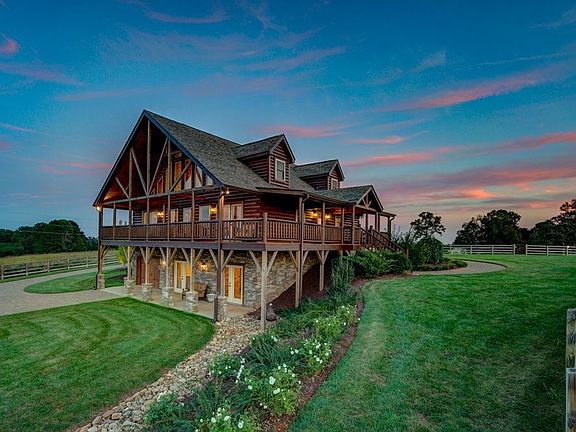 Located in beautiful Campobello, South Carolina, just 30 minutes from T.I.E.C., this impressive equestrian estate welcomes you through its own private security gate down a long, brick paved driveway bordered by trees and lush green pastures. To the right of the circular drive is a gorgeous 5 bed room, 4.5 bath Blue Ridge log cabin with dramatic wrap around porches that display stunning, majestic views. Ranch 357, proudly displayed on 31 acres of which 30 are fenced, also includes 25 acres of pastures, a 12 stall Morton barn with large parking pad, 9 paddocks, a 250 x 120 ft. arena with 6â of river sand, and a hay/equipment barn. An abundance of impressive home details augments the stunning mountain views and rolling pastures. The main living area, with its towering, vaulted ceilings and floor to ceiling windows, boasts a 2 story, stacked stone fireplace, exquisite chandeliers, open floor plan with gleaming pine floors and walls. The custom kitchen includes an island bar, granite counters, stainless steel appliances, double ovens, walk-in pantry, and a unique black stone farmhouse sink! The master suite, with its own vaulted ceilings and elegant chandelier, is bright with windows and French doors that open to a covered porch. Perfect for enjoying the breathtaking mountain views with morning coffee!! The ensuite bath is complete with granite topped double sink vanities along with a make-up vanity, jetted tub, walk in shower and expansive walk-in closet. On the main floor, you will also find a powder room and a lovely guest bedroom suite. Up the beautifully carved staircase, youâll discover 2 more bedrooms, a full bath, and a loft area which showcases, again, the beautiful great room and gorgeous mountain views! The daylight, walk-out finished basement could be a perfect in-law suite including living area with French doors opening to a private patio, a large bedroom tucked behind a sliding barn door, attached full bath, laundry room, sink and refrigerator. The equestrian facilities are second to none in the area and were custom designed by Morton Barns for boarding, training, and selling horses. A separate, private, automatic gate from the main road brings you to an extra -large, gravel parking area along with an additional, brick paved parking pad directly in front of the tastefully landscaped, irrigated grounds surrounding the front of the barn. The covered entrance takes you right into the heated/cooled office space/cantina complete with Italian tile floor, built-in cabinets, conference table, sink, refrigerator, and 2 half baths. The impressive barn is a 108 x 36 ft. Morton building with upgraded rubber paved hallway, upgraded sliding barn doors with windows, 12 upgraded stalls complete with sliding doors, fully insulated and hidden water supply, rubber matting with French drains, individually controlled fans, swivel feeders with a grain trough and a hay bin. The stalls could easily be converted into large foaling or stallion stalls. Six stalls have their own turnout paddocks. The barn is also equipped with a tack room, feed and utility room, wash bay with hot and cold water, 3 central adjustable fans, lights set on timers, and an automatic fly spray control system. The backside of the barn opens to the riding arena fully equipped with 6 inches of river sand, an auto shoot and several catch and release pens. The 42 x 56 ft. hay barn is large enough to not only house hay but farm equipment as well. Attached to the hay barn are 3 additional horse turnouts and a covered area to park a horse trailer or RV. Whether you are a lover of horses, trainer, entrepreneur, equine vet, or sanctuary seeker, this remarkable home with it's breathtaking mountain views and impressive facilities are a must see!! Call to schedule your private tour soon!