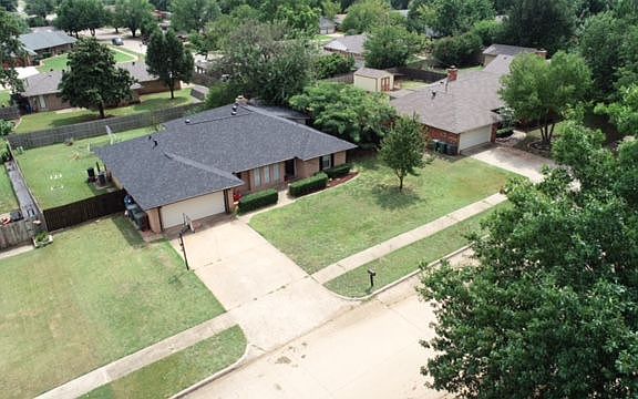 SPACIOUS and MOVE-IN ready! Perfect mother-in-law plan; bedroom 2 has it's own bathroom on one side, on the other, the master has a large box sitting window, an en-suite bathroom with double vanities and good-sized closet, bedrooms 3 & 4 share 3rd full bathroom. All large bedrooms. Three living spaces offer amazing possibilities; a bonus living space, presently used a classroom/playroom, perfect for home-schoolers. The wooden divider gives privacy from the family living room with corner fireplace. The other living space could be a large study, playroom, formal living/dining room. Updated kitchen with granite counters, new S/S appliances, with a good-sized dining area. Open concept. Freshly painted, new laminate flooring, new carpets installed a year ago, updated kitchen, new roof installed, new gutters, new front fence, great sized backyard, with gate for extra parking. STORM SHELTER. Dead-end road leads to Cimarron Middle School. Great location for walking trails, playpark & dog park!