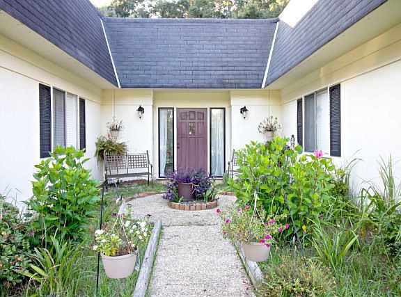 Lovely home close to everything. Beautiful lot with large oak trees and lots of shade in the fenced backyard. Outdoor courtyard between two wings of the house. Courtyard has exposed aggregate patio. Living area and bedrooms are totally separate in this floor plan. Lots of room to spread out and enjoy your privacy. Master suite has walk-in closet and opens to courtyard. There is an RV hook-up in side yard.
