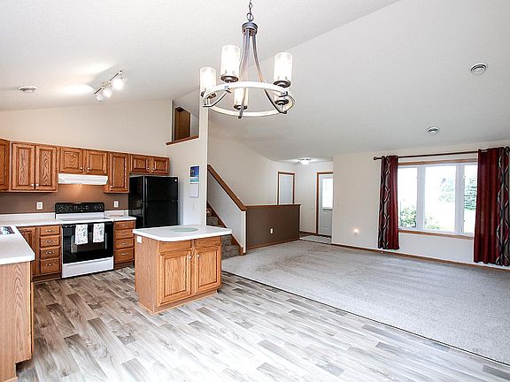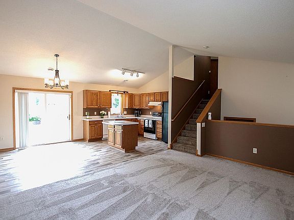 Located next to city park this 3 level home features vaulted ceilings, open floor plan, center island kitchen, new main level & upper-level flooring, large primary walk-in closet, in floor heat in lower level, 3 bedrooms and 2 baths. Double attached garage. This well cared for home is ready to move in to.