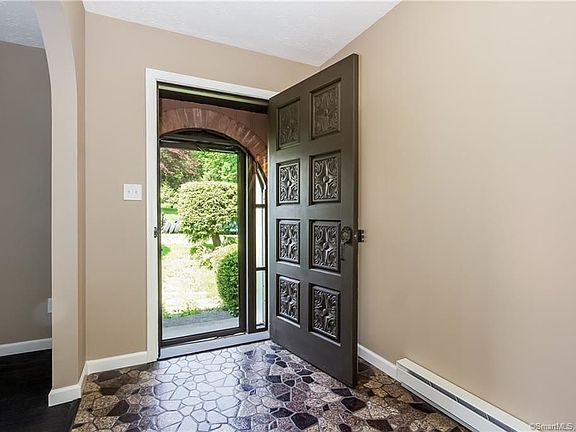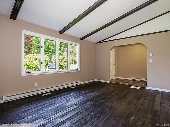 Fabulous one floor living in this 3 bedroom, 2 bath ranch home. The home has lots of charm with its wide planked, espresso finished wood floors, arched doorways and vaulted ceilings and beams. Bright Kitchen with a center island has large pantry with sliders leading to an expansive, wrap around deck. Two bedrooms on the main level with the third bedroom located in the finished lower level. The lower level also has a huge family room with wood stove and walks out to the backyard. The glass greenhouse off the lower level is every nature lover's dream. 2 car detached garage, central air, shed and pigeon house. Nicely hidden off the main road, this home is surrounded by a wooded yard offering privacy in the backyard. Don't miss out on this home that has so much to offer!