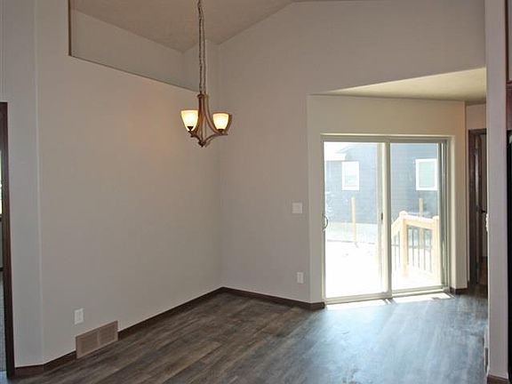 This outstanding ranch floor plan has over 1000 SqFt on the main floor. The sparkling kitchen features custom birch cabinets with mocha stain, a breakfast island, tiled backsplash and black appliances. The dining room is open to the kitchen area and features a slider to the concrete patio. The main floor is open and spacious with soaring vaulted ceilings throughout. The living room features a towering dormer ceiling and an amazing picture window. The master bedroom is oversized and has a walk-in closet. The master bath is outstanding with a full bath, vanity and linen. The main floor is complete with a 2nd bed, full bath and main floor laundry. The lower level is unfinished with potential for a family room, 2 more beds, full bath and tons of storage. . FEATURES: 3 panel doors, Birch Cabinets with mocha stain, Vinyl Floors, Patio Area, 9' ceilings on the main, windsor windows, Hardi Siding, 92% HiEff Furnace, Engineered Trusses, 50 gal water heater.